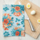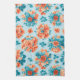 Mesmerising Blue and Orange Floral Illustration Tea Towel
