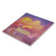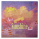 The wall, in the original artwork by ZoeSPEAK on this inspirational large Ceramic Tile, is an old red brick wall with a mural on stucco which is crumbling away. The mural is a picture of puffy clouds in the sunset, all pink and bright yellow at the top against a deep blue sky. The message is to let the sunshine in.