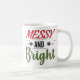 Embrace the chaotic joy of the holiday season with this clever, modern twist on a classic phrase! The design features "MESSY AND Bright" in bold, festive typography, blending classic red and green colors with snowflake accents. This design is perfect for anyone who loves the holidays but admits that things don't always go perfectly—whether it's gift wrapping, baking, or the family gathering itself. It makes an excellent joke gift, a fantastic stocking stuffer, or a great design for a t-shirt or a mug for that much-needed holiday coffee.