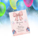 Celebrate in elegant style with our stunning pink bow birthday invitation featuring a beautiful watercolor messy coquette pink elegant bow design which showcases a soft blush pink bow illustration with delicate watercolor textures, pink and blue balloons, and sophisticated typography—perfect for girls' birthdays, sweet sixteen celebrations, first birthdays, or any feminine party celebration!