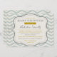 This Baby Shower Invitation features a messy teal/blue Chevron background with a grey frame and text in grey and gold colours with modern typography.