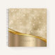 The metallic gold and glitter background of this design is divided horizontally by a soft wave of twisted metal that gives this notebook an aura of luxury. This design works well for any professional: event coordinators, organizers, financial consultants, attorneys, estheticians, etc; anyone who wants a notebook with eye-catching elegance. Add your personal contact information on the reverse using the provided template. Search ID807 to see other products with this design, including matching business cards.