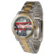 Very good quality watch that looks good whether dressing up or down. The band is sturdy. The watch is rather large so might not work for smaller folks. Recommended as a good gift. Printing is just a touch light but adds a nice touch of personalization.
