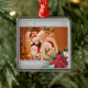Poinsettia metal family photos Christmas ornament with year and stylish light grey and white floral clip art.