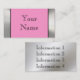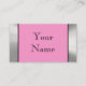A metallic look frame border in smooth silver stainless steel look chrome on the front of the card with a light pink background gives a bold, unique 3d look professional-looking business card. Easily customise with your own information. Use the dynamic black stylish font shown or easily change the font style and colour. Also you can easily change the pink colour background to any colour. Just click on "Customise it" and then click on "edit" and then "background" to change it. A unique and smart looking card, especially great for industrial, designers, artists, retail, etc. More information can be put on the back as well on the smooth metal look background. Design is printed on paper, not actual metal. A strong business card that stands out from the rest.