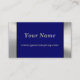 A metallic frame border in smooth silver stainless steel look chrome on the front of the card with a blue background gives a bold, unique 3d look professional-looking business card. Easily customise with your own information. Use the dynamic matching grey font shown or easily change the font style and colour. Also you can easily change the blue background to any colour. Just click on "Customise it" and then click on "edit" and "background" to change it. A unique and smart looking card, especially great for industrial, designers, artists, retail, etc. More information can be put on the back as well on the smooth metal background with dynamic black text. A strong business card that stands out from the rest.