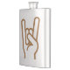 Flask designed with the Sign of the horns, Metal Horns, Hook 'em Horns, Metal Hand.