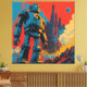 This vibrant digital art features a larger-than-life man-machine giant robot, exuding vivid colours and captivating design. The sci-fi theme is accentuated by the presence of iron robots, cyborgs, and humanoids, creating a visual feast for the eyes. The machine's intricate details come to life in a mesmerising display of futuristic art, evoking a sense of wonder and awe.