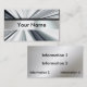 A metallic nameplate in smooth silver stainless steel look chrome on the front of the card with a cool, dynamic silver burst background gives a bold, unique 3d, modern look professional-looking business card. Easily customise with your own information. Use the black bold stylish font shown or easily change the font style and colour. A unique looking card, especially great for industrial, skilled trades in construction and building occupations, automotive, etc. More information can be put on the back as well on the smooth silver metal look background. Printed on paper, not actual metal. A strong business card that stands out from the rest.