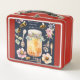 This is a standard metal lunchbox that appears to work just fine. We designed this box ourselves with an uploaded photo and custom text on the front and back. It looks absolutely beautiful except the front of the lunchbox is not centered like it shows in the photo. The print borders don't align with the inset flat part of the box where the preview photo online showed it perfectly centered in there. The back looks nice and centered though.