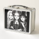 This is a standard metal lunchbox that appears to work just fine. We designed this box ourselves with an uploaded photo and custom text on the front and back. It looks absolutely beautiful except the front of the lunchbox is not centered like it shows in the photo. The print borders don't align with the inset flat part of the box where the preview photo online showed it perfectly centered in there. The back looks nice and centered though.