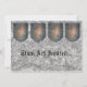 Linda Baysinger Peck's painting of a gold, mediaeval, rampant, heraldic lion, on faux metal shield, with grey faux stone. Just add your own text on both sides, to personalise.