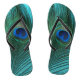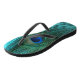 Great peacock feather still life photography. The shiny aqua blue background adds depth to the photo. Great for people who love peacocks and birds. Fun peacock flip flops for a nice summer day.