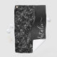 Easily personalise this black brushed metal and glamourous faux glitter patterned golf towel with your own custom name.