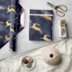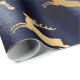 Metallic Blue and Golden Reindeer Wrapping Paper