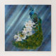 Metallic Blue-green Peacocks, Emerald Green Silk Jigsaw Puzzle