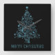 Black Background and Shiny Metallic Blue Stars Christmas Tree Elegant Wall Clock with Text Merry Christmas, you can change the text