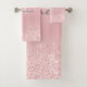 Metallic Blush Pink Dripping Glitter Monogrammed Bath Towel Set