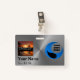 Metallic effect design custom photo id name badge template. Create personalised photo name badges for school club or office.