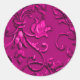 Metallic Embossed Look Damask in Magenta Classic Round Sticker