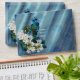 Decorative metallic emerald green silk with two peacocks, feathers and white flowers to match this peacock wedding or decor. This collection comes with a matching guest book for wedding guests