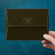 Beautiful in it's simplicity, this wedding suite envelope features a sleek metallic gold background overlaid with a delicate geometric pattern for the interior and optional dark umber exterior. The bride and groom's names and address can be customised using the provided template. Search ID648 to see all the pieces in this elegant set.