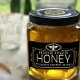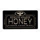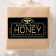 Elegant honey label with elaborate border and heraldic honeybee. Personalise with your beekeeping business name, net weight and apiary location. Honey is written in an 'embossed' gold font. Vintage mediaeval illustration from UK of a honeybee in a metallic gold oval.