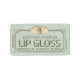Elegant lip gloss container label with elaborate border and heraldic honeybee. Personalise with your beekeeping business name, net weight and apiary location. Lip gloss is written in an 'embossed' gold font. Vintage mediaeval illustration from UK of a honeybee in a metallic gold oval.