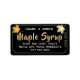 This maple syrup label can be customised with your name or business name, address, contact info such as webpage or cell# and maple syrup volume. There is a handy list of common container sizes with their conversions in the form field where you fill in your information. Black background with gold text and border. For a special touch, the word “maple syrup” has a 3D appearance. Two dainty gold and yellowish-orange leaves are scattered on the black background as though they were falling from a sugar maple in autumn.