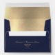 Make a lasting impression with our luxury navy blue and faux gold foil 5x7 envelope, designed to exude timeless sophistication and modern elegance. This sleek envelope features a distinguished monogram at the top flap, adding a personalised touch that sets your wedding stationery apart. The minimalist design is elevated by the rich navy blue colour and shimmering faux gold foil accents, creating a perfect blend of elegance and style.