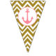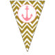 Personalised metallic gold and white chevron pattern with pink nautical bunting flag. The design features a metallic gold and white chevron pattern, a pink nautical anchor and your custom name.