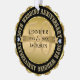 Elegant 50th wedding anniversary ornament with customisable text. Metallic gold and black. White diamond accents