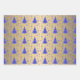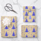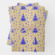 Metallic Gold Blue Christmas Trees Pattern Wrapping Paper Sheet