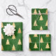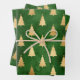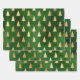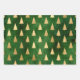 Metallic Gold Christmas Trees on Green Wrapping Paper Sheet
