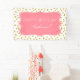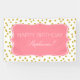 Metallic gold confetti with pink birthday party banner. The design features a metallic gold on white confetti pattern and a pink shape in the middle with your custom text.