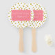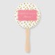Metallic gold confetti with pink birthday party hand fan. The design features a metallic gold on white confetti pattern and a pink shape in the middle with your custom text.