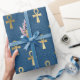 Metallic Gold Egyptian Ankh on Blue Wrapping Paper