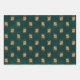 Metallic Gold Egyptian Scarab Beetles on Green Wrapping Paper Sheet