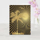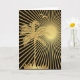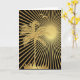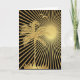 Metallic gold palm tree and sun abstract greeting card. Golden rays of the sun, golden palm tree and flying bird. Customise your card colour background, message and fonts