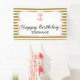 Metallic gold stripes with pink nautical anchor birthday party banner. The design features a metallic gold and white striped pattern, a white shape with a pink anchor, and your custom text.