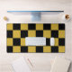 Elevate your workspace with this Metallic Gold with Black Square Style Pattern Desk Mat. Featuring striking black squares on a shimmering gold background, it offers a smooth, durable surface perfect for writing or typing. Combining luxury and functionality, this desk mat adds a bold, sophisticated touch to any desk setup.