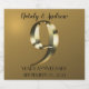 Celebrating 9 years together. Happy 9th wedding anniversary. Golden metallic label.