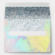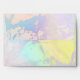 This unique luxurious custom mailing envelope is sure to stick in everyones minds. It features a printed metallic faux iridescent marble swirl exterior. Interior features marble and silver metallic faux holographic texture with cascading sparkles raining down of Opal Peacock Coloured Glitter gems and rhinestones.