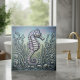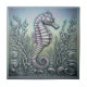 A majestic seahorse is the star of this intricate faux bas-relief tile, gracefully posed amidst dynamic waves and flowing sea flora. The sculptural detailing highlights the seahorse's armored body and coiled tail, while the signature iridescent finish lends a luxurious, shifting metallic glow in hues of icy silver, rose, and pale aqua. This tile provides an unparalleled touch of sophisticated, high-end marine fantasy to any accent wall, water feature, or luxury powder room. Search ID1223 to see other marine elements in this dramatic metallic series. Note: design may contain generative content.