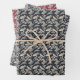Metallic Leaves on Black Blue and Red Wrapping Paper Sheet