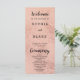 The essential details, including the couple's names, wedding date, and venue, are elegantly presented in classic black using a simple block font. This choice ensures clarity and readability, allowing your guests to easily follow along with the ceremony proceedings. To enhance the program's charm, the words "Welcome," "Ceremony," and "Wedding Party" are artfully written in a decorative script font. This elegant script adds a touch of grace and sophistication, infusing the program with a sense of romance and refinement.