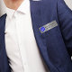 Professional looking employee name tag done in a silver tone brushed aluminium look, with space, on the left side for your company logo. Two areas of black text are ready to personalise, for your business needs.