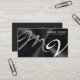 Elegant Black and Silver Metallic Monogram Photography Business Card. With reflective metal swirl background print.