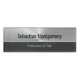 This professional magnetic back name tag features a name in black on the flared faux stainless steel background and below the title in light gray centered over a dark gray background. Personalize the text fields or click customize to select a font style, size, and color you prefer.