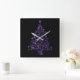 Metallic Purple Stars Christmas Tree Elegant Black Square Wall Clock